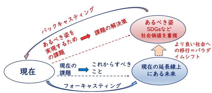 図1:バックキャスティング手法とフォーキャスティング手法の違い